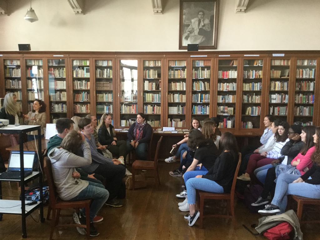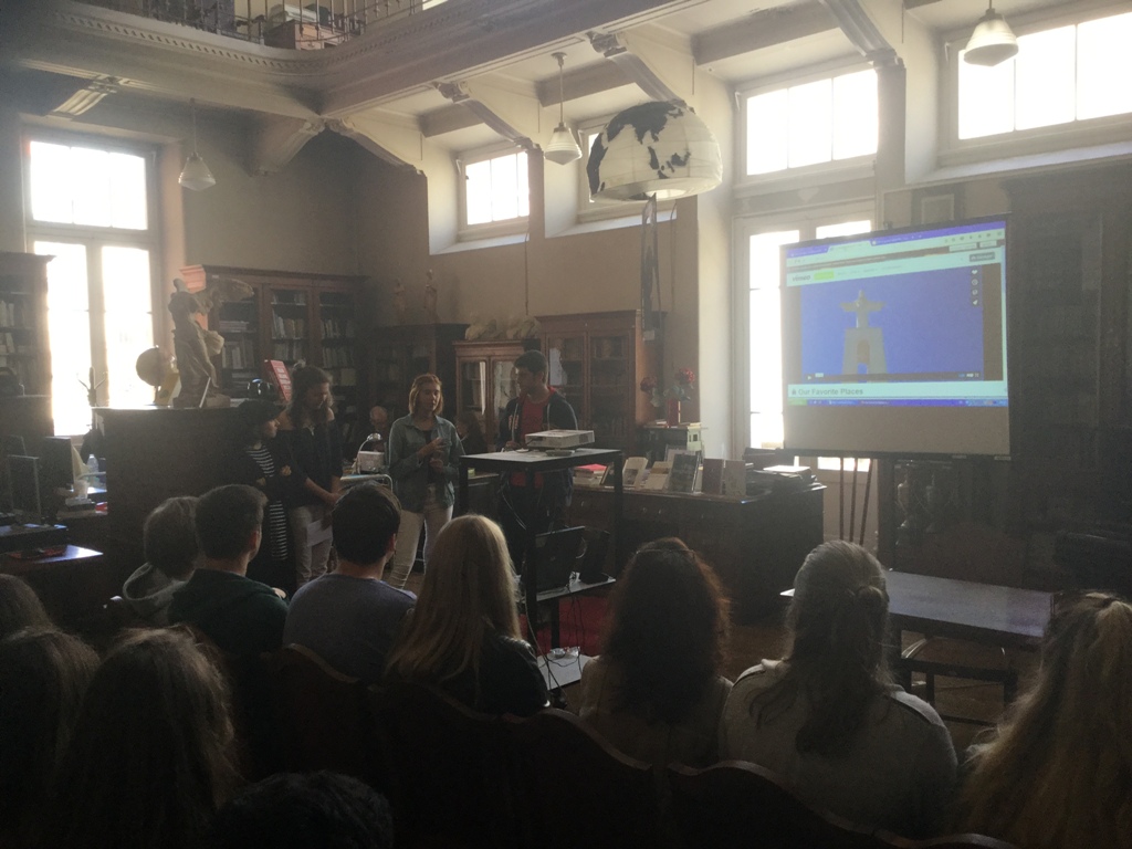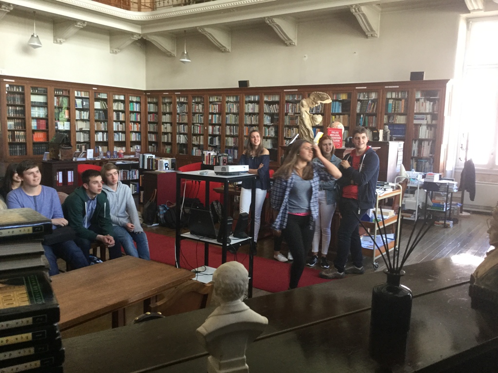 Depois de um almoço na nossa cantina os alunos foram acolhidos, na biblioteca, pela turma A do 11º ano; aqui, foi exibido um vídeo sobre a cidade de Lisboa e tecidas explicações sobre o mesmo. As alunas recentemente chegadas da Hungria, estabeleceram semelhanças e contrastes entre a vida escolar e familiar, entre a nossa cidade e a vida numa cidade Húngara; foram igualmente feitas considerações entre as diferenças e o inicial choque cultural na vida duma aluna do Minnesota a viver e estudar em Lisboa durante um ano letivo. Finalmente, através de um diálogo animado, os alunos trocaram impressões e partilharam experiências do que é ser um aluno do norte e do sul da Europa. Não houve tempo suficiente para alongar ou aprofundar discussões - Food for thought.